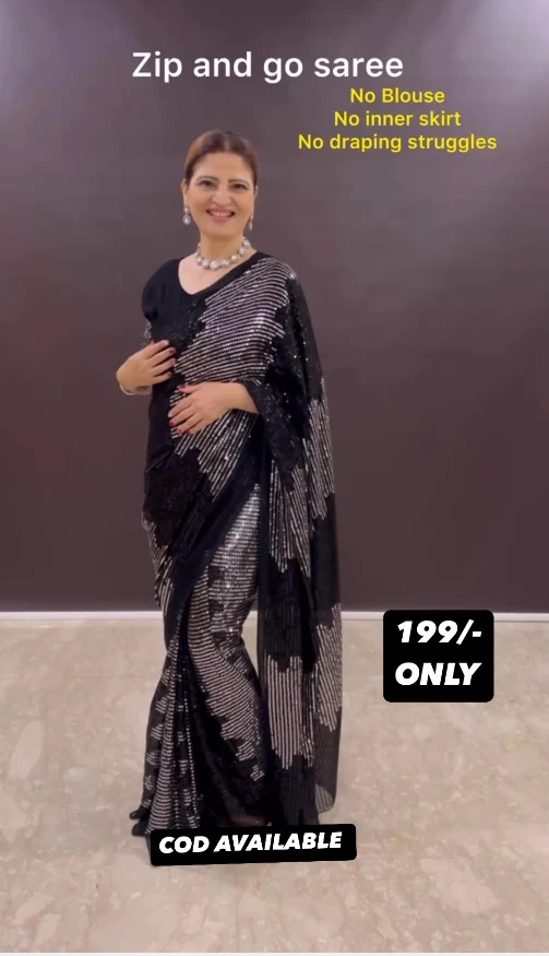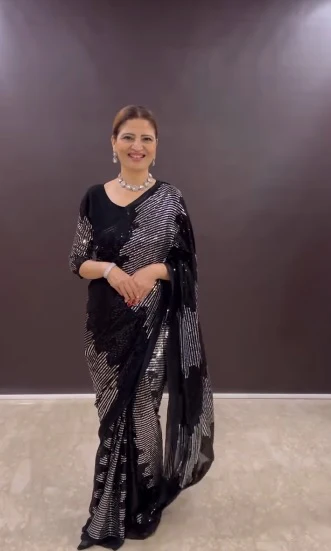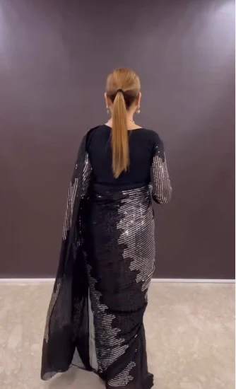 Faux georgette sequin saree gown with heavy handwork