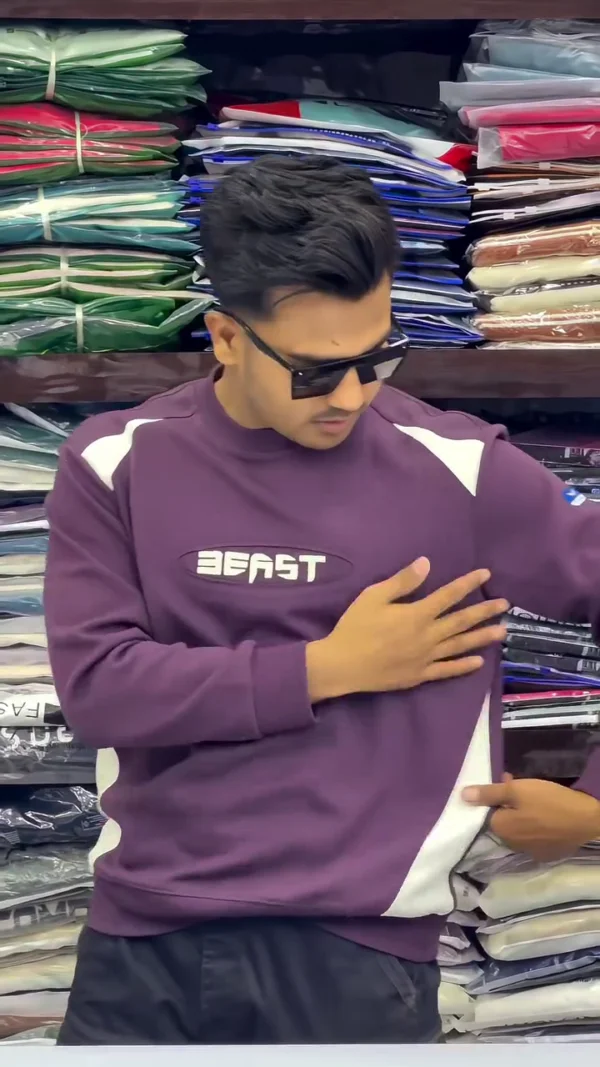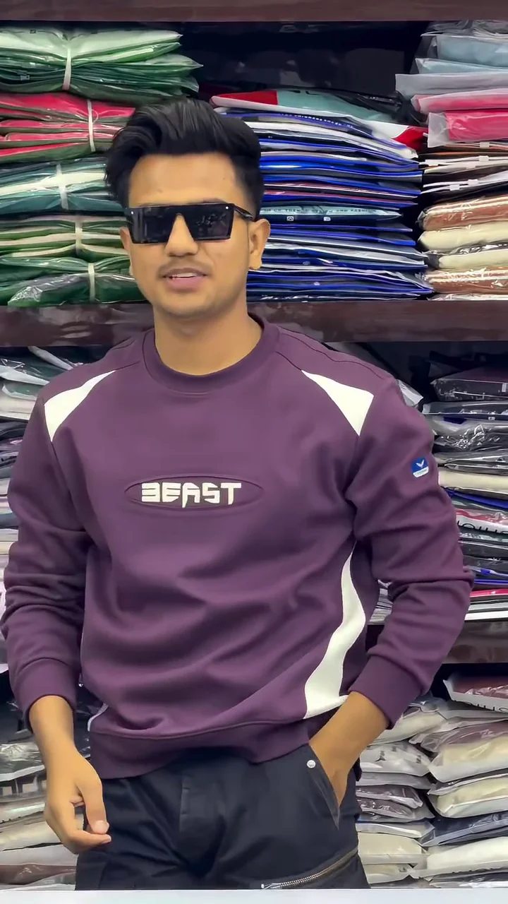 + Free ShippingPurple striped sweatshirt has a round neck, 2 insert pockets, long sleeves, ribbed hem