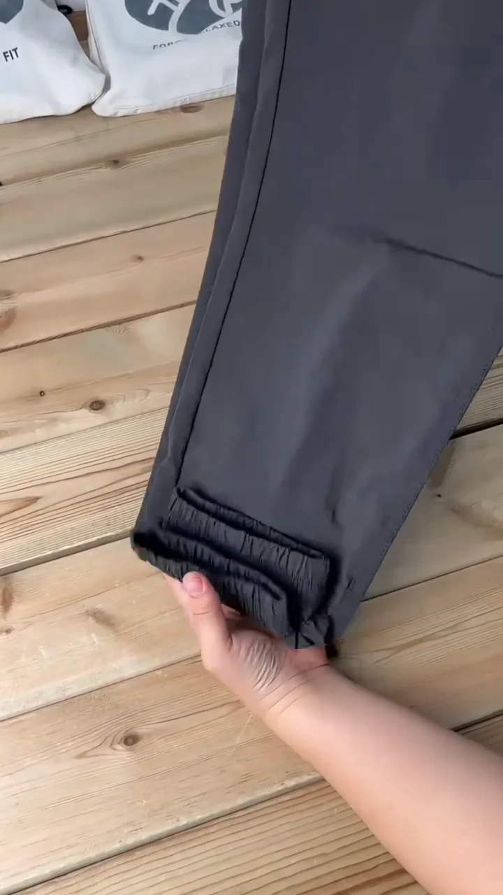 Made from high-quality lightweight fabric, the trousers feel soft on the skin while providing excellent breathability. The stretchable material ensures unrestricted movement, making them ideal for long hours of wear. The elastic waistband with an adjustable drawstring offers a secure and customizable fit, while the button closure adds a smart, structured finish.