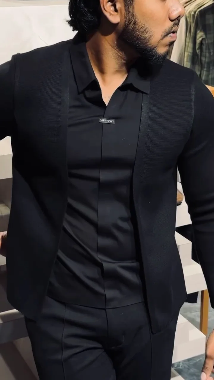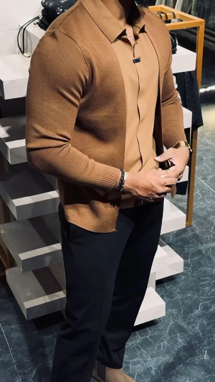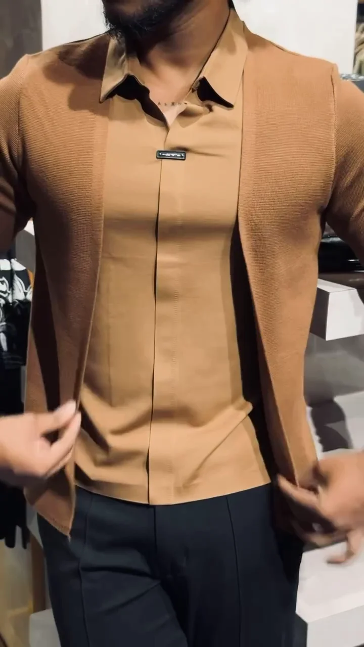 Men’s Slim-Fit Layered Knit Shirt with Open Cardigan Style