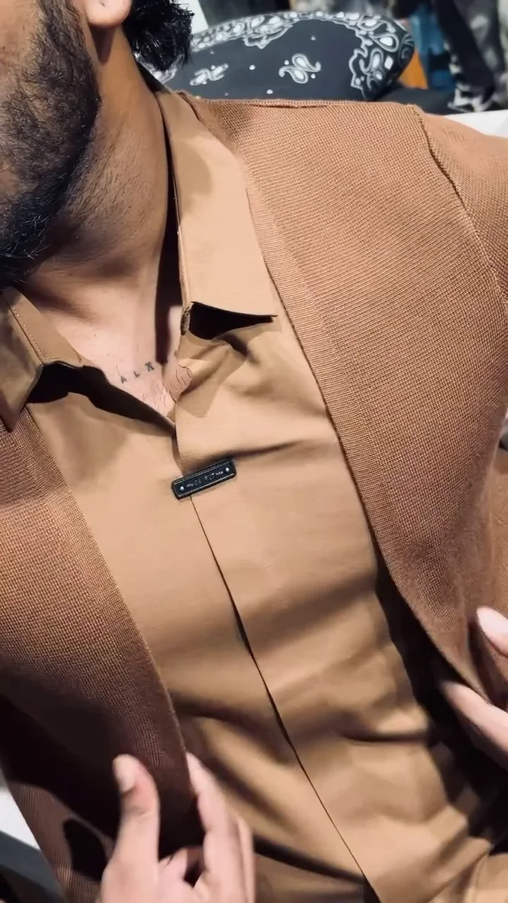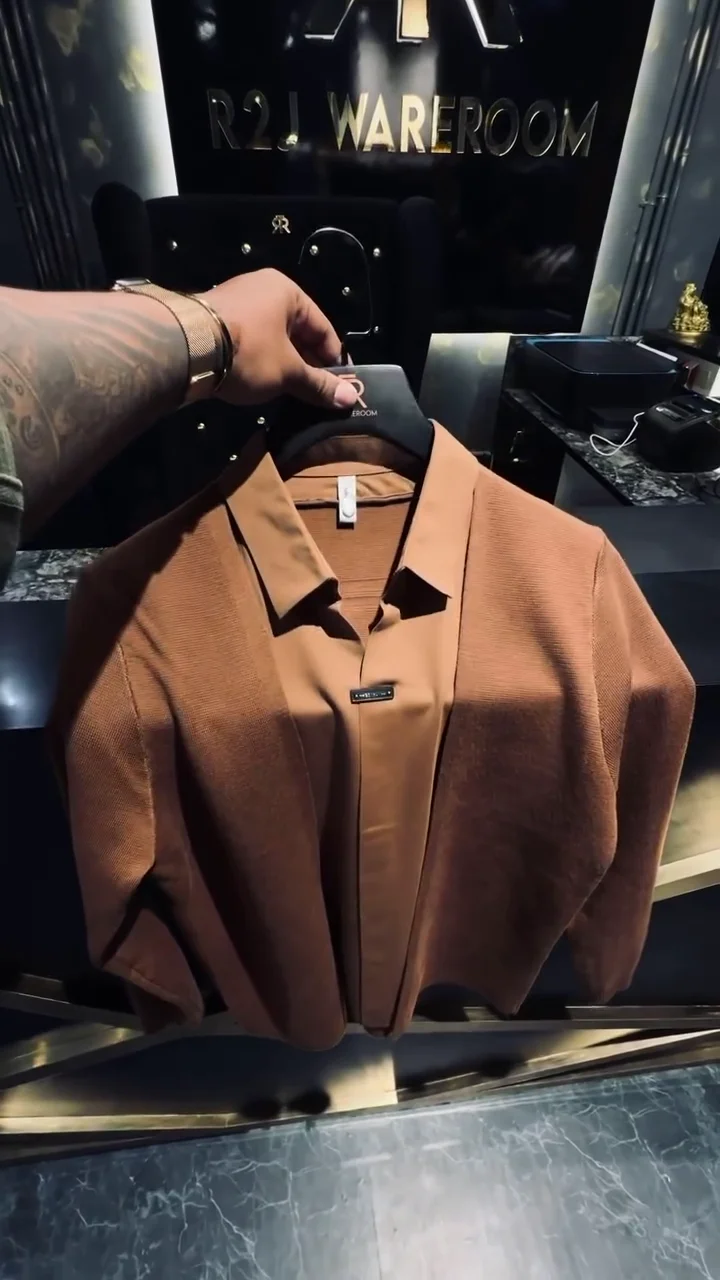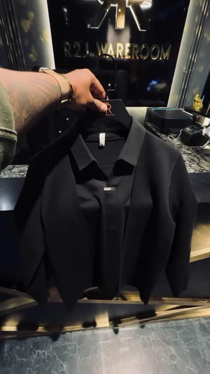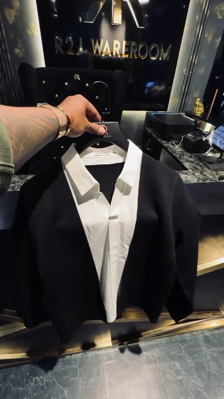 Men’s Slim-Fit Layered Knit Shirt with Open Cardigan Style