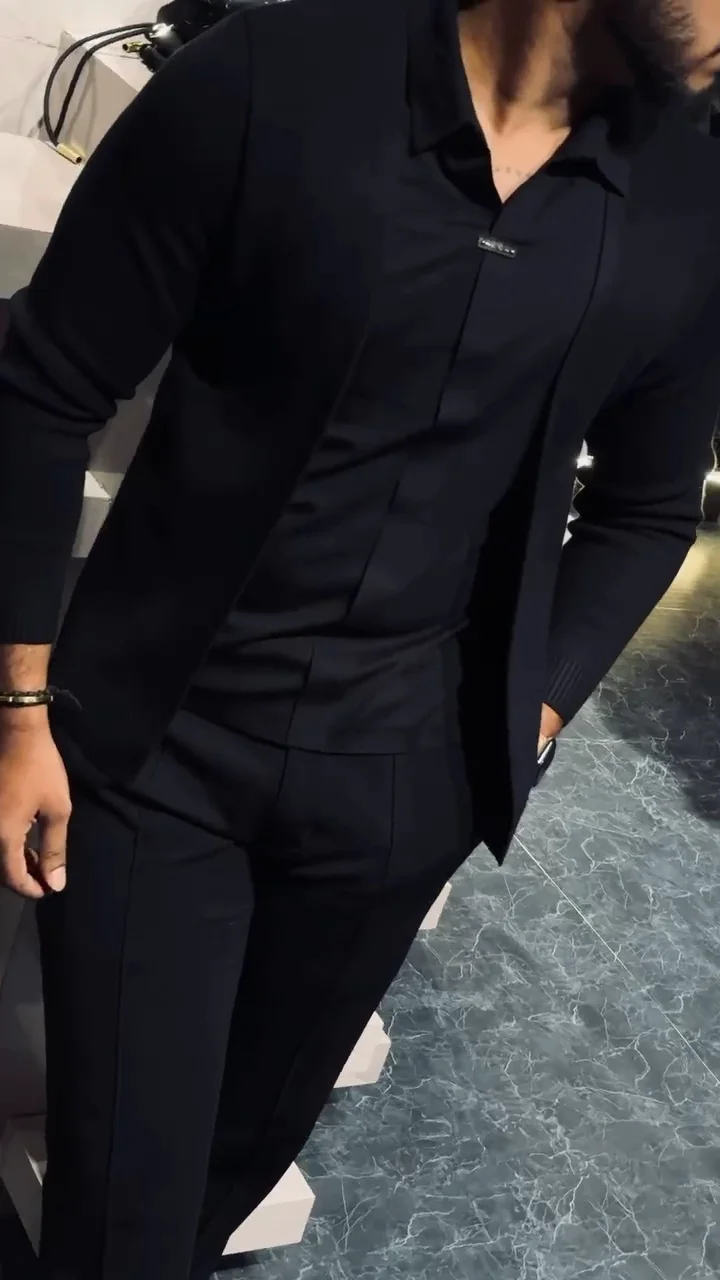 Men’s Slim-Fit Layered Knit Shirt with Open Cardigan Style quantity